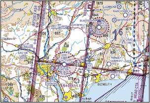 Be aware that “neighbouring” ATZs can have differing vertical limits. In the above example Cosford ATZ vertical limit is 2,272 feet amsl whereas Wolverhampton Halfpenny Green is 2,283 feet amsl. In the example below, Exeter’s ATZ extends to 2,102 feet amsl but Dunkeswell’s extends to 2,839 feet amsl. Even if you overfly Exeter’s ATZ by 500 feet you would still infringe Dunkeswell’s unless you adjust your altitude along the route or call Dunkeswell and obtain information to enable the flight to be conducted safely within the ATZ.